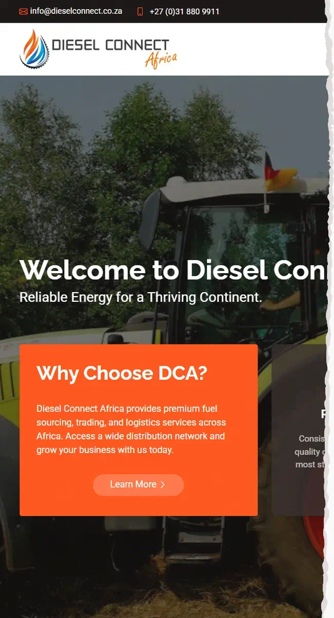 Diesel Connect Africa (DCA) is a leading provider of premium fuel sourcing, trading, and logistics services across Africa. Founded in 2024 by seasoned professionals, DCA aims to bridge the gap between fuel suppliers and a growing network of customers, serving industries such as mining, agriculture, and logistics.